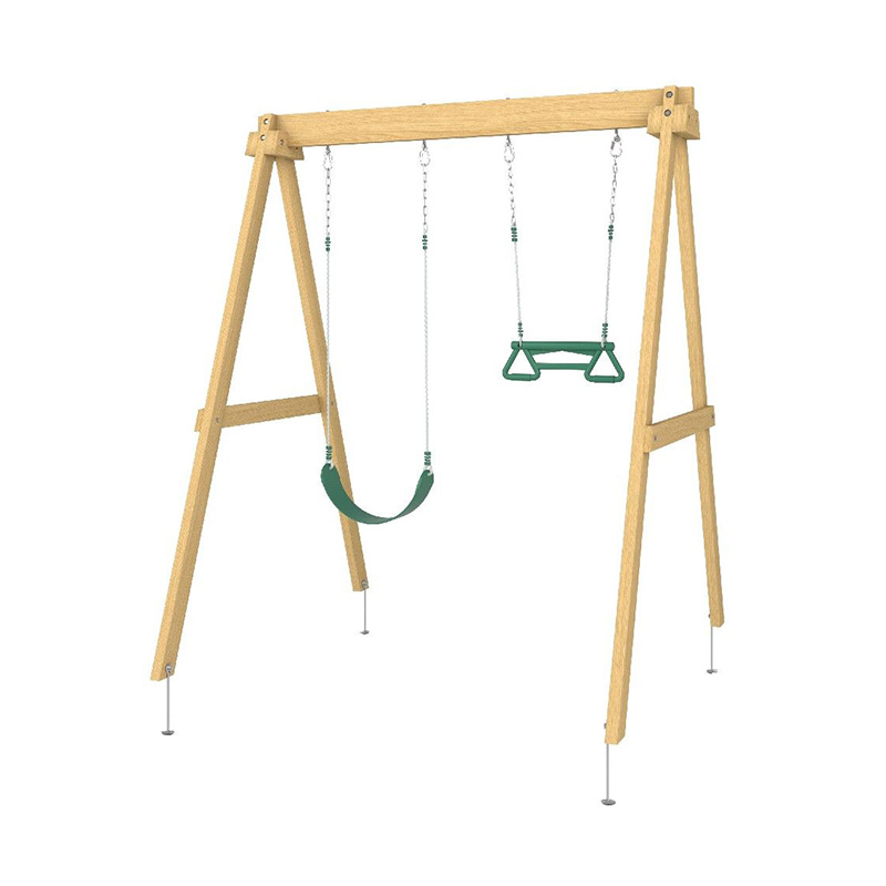 Tieto drevené dvojité súpravy majú špeciálny flexibilný hojdací konektor, ktorý nahrádza plastové a kovové konektory, ktoré sú potrebné pre okrúhle drevo. Vďaka tomuto konektoru swing sa dá dvojitý výkyv ľahko zmeniť na jediný výkyv s mierne vyčnievajúcim lúčom. Na konci môže váš malý dobrodruh zavesiť na lezenie alebo opičie hojdačku. Ďalšou výhodou je to, že z dôvodu svojho chladného dizajnu sa stabilná súprava hojdania zmestí aj do menších záhrad.